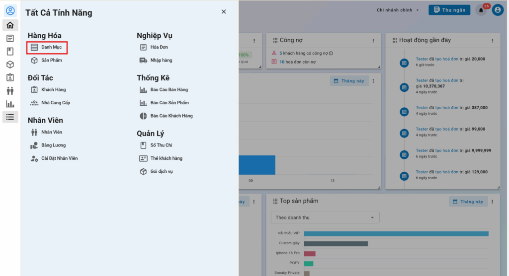 Bước 1: Tại Tất cả tính năng, chọn Danh mục